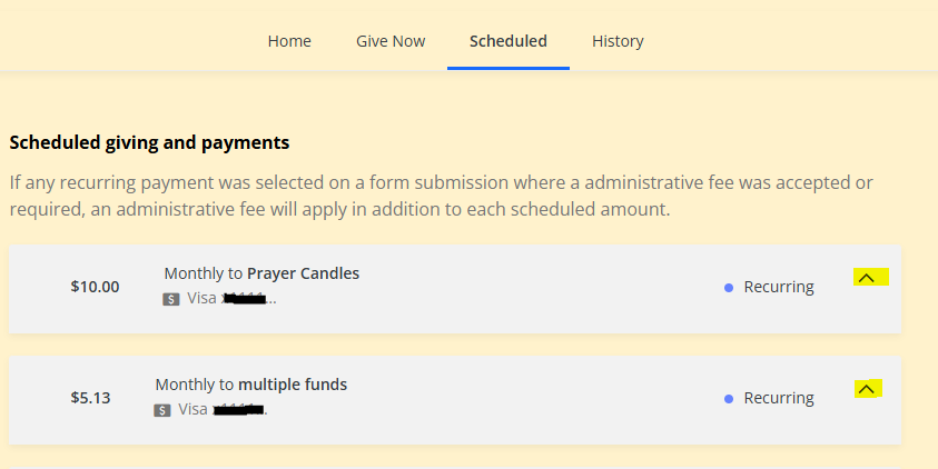 For them to add the processing offset, they would need to log in to their donor accounts, go to the scheduled tab and then click the arrow on the gift that they want to change.